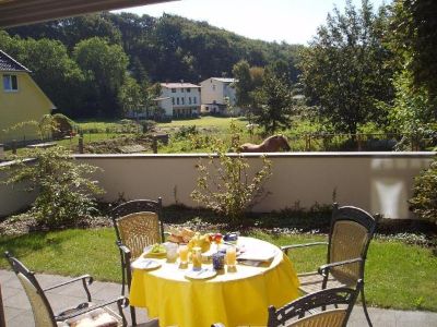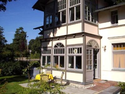 Blick zur Effi-Briest-****Villa mit Terrasse erbaut ab 1890 als Sommerresidenz der Baroneß von Ardenne alias Effi Briest (näheres abends bitte bei Fontane nachlesen)